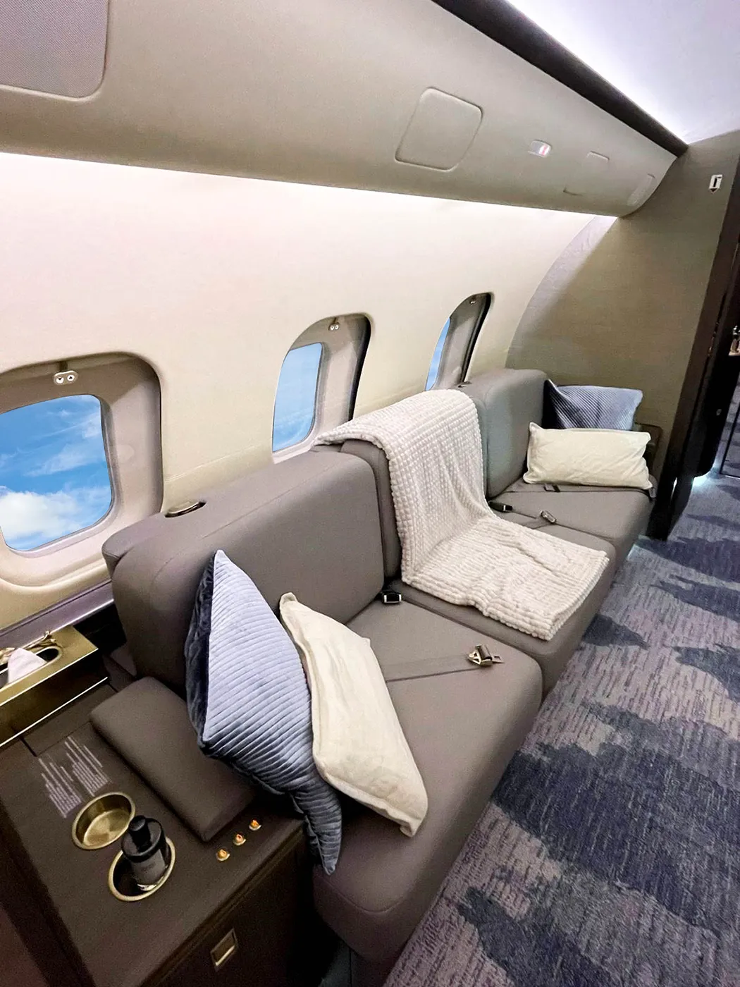 Plush, handcrafted seats invite passengers to sink into comfort, while contemporary accents and premium textiles exude sophistication throughout. Every detail, from the ambient lighting to the custom fixtures, have been thoughtfully chosen to create an atmosphere of refined comfort.